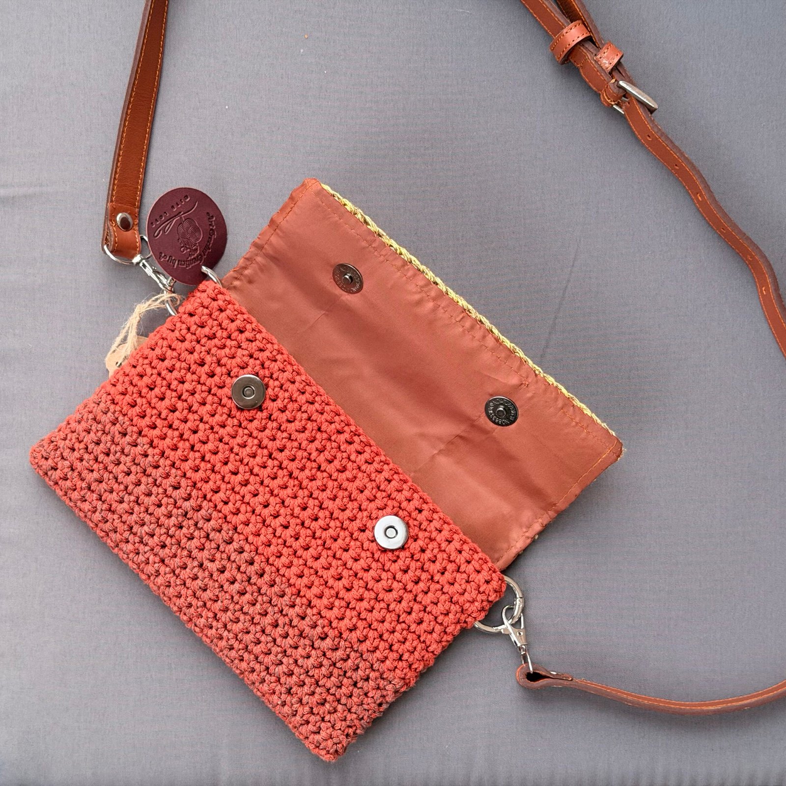 Handmade in fresh, vibrant tones inspired by citrus fruits, this crochet crossbody wallet is both lively and practical. Compact yet functional, it’s perfect for carrying essentials like cards, cash, and keys while keeping your hands free. The Citrus Crossbody Wallet adds a bright, handmade touch to any outfit, making it a fun and versatile accessory for everyday use.